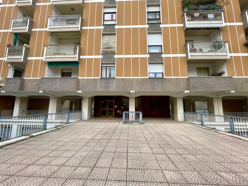 L’appartamento è composto da ampio ingresso con disimpegno, soggiorno con angolo cottura e accesso al balcone, camera matrimoniale con parquet, anch’essa con accesso al balcone, e ampio bagno con vasca.